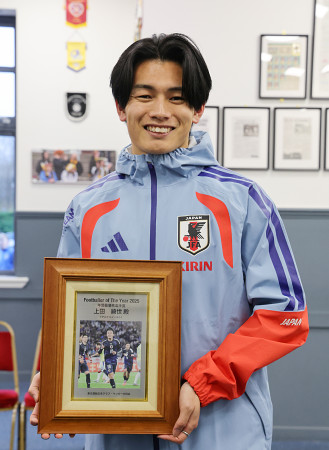 全国のサッカー担当記者投票による2025年度年間最優秀選手「フットボーラー・オブ・ザ・イヤー」に、フェイエノールトに所属する日本代表FW上田綺世(27)が初めて…
