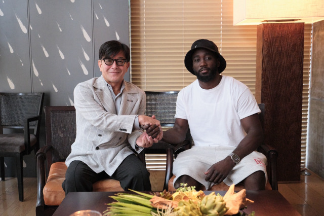 RIZIN榊原信行CEO(左)とボクシング史上初の3階級4団体統一王者のテレンス・クロフォード【撮影:池本史彦】 (C)ORICON NewS inc.