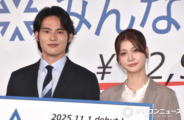 洋服の青山『スーツスクエア』新商品・新キャラクター・新CM発表会に登壇した(左から)水上恒司、生見愛瑠(C)ORICON NewS inc.