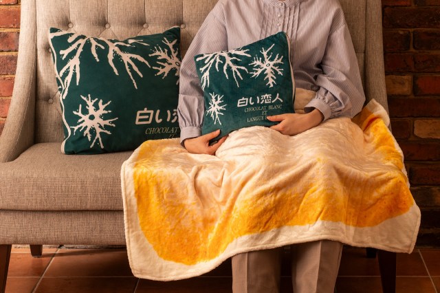 「白い恋人」がクッションブランケットに 寒い時期にぴったりな“ラング・ド・シャクッキー”デザイン