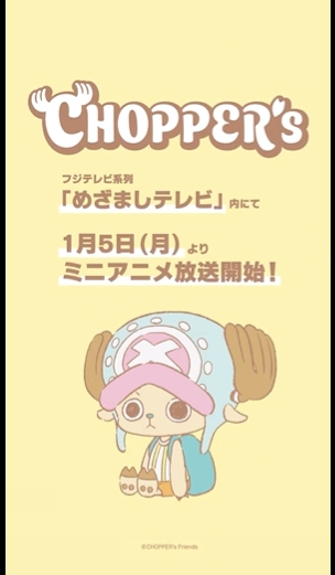 『ワンピース』新作ミニアニメ発表 『CHOPPER's』1月5日からめざましテレビ内で放送