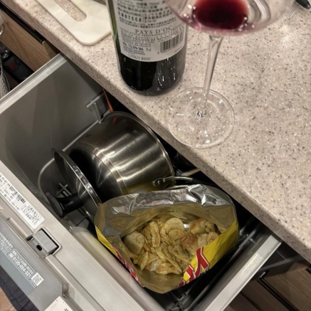 食洗機はポテチを隠すためにある? 子どもに”おやつ”見つからないよう徹底、ママの"晩酌スタイル"に共感の声「バレずに食べられる」