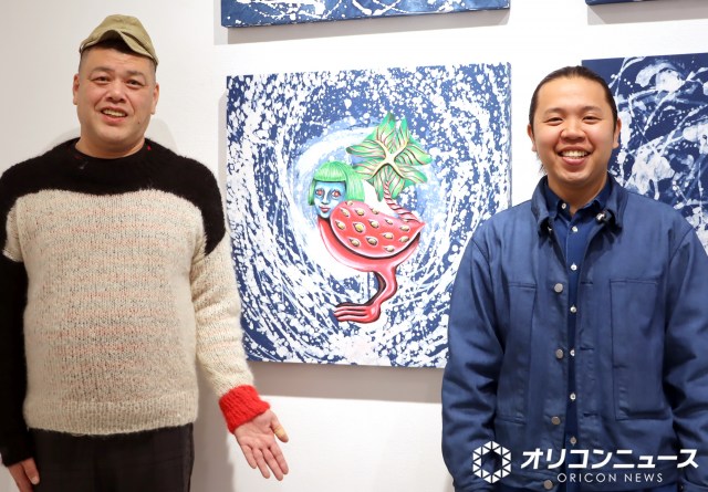 『Laugh in Kyoai 京藍の中で笑う 京藍染師 松崎陸 個展』の取材会に出席した(左から)くっきー!、松崎陸氏 (C)ORICON NewS inc.
