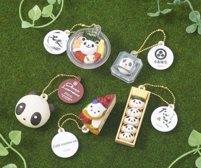 ラインアップは「カフェコムサ『パンダのショートケーキ』」、「北辰鮨『パンダミルフィーユ』」、「たごさく『ぎゅぎゅっとパンダおこわいなり』」、「アルサスローレン『パンダパン』」、「小布施堂『栗あんパンダまんじゅう』」の全5種類で、スイーツから惣菜まで、パンダをモチーフにあしらった愛らしさ全開のフードをそのままぎゅっと小さく再現した。