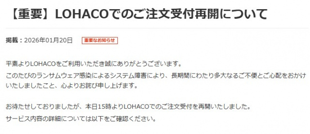ロハコ、注文受付を再開 アスクルの「ランサムウエア」の攻撃を受けて停止「長期間にわたり多大なるご不便とご心配をおかけいたしました」