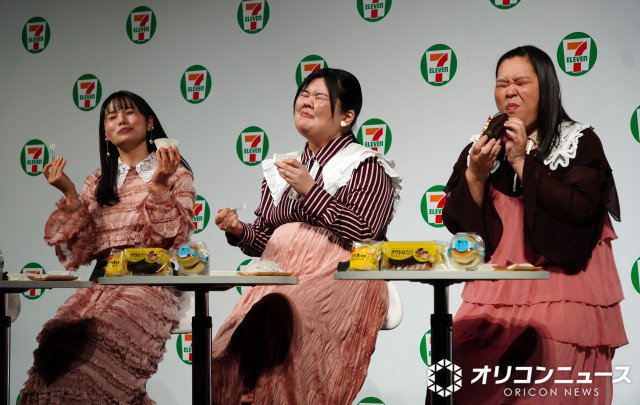 お笑いトリオ・ぼる塾(田辺智加/42、あんり/31、きりやはるか/30)が22日、都内で行われた『セブン-イレブン・ジャパン 新スイーツ発表会』に登壇。ぼる塾…