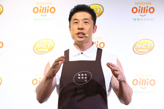 お笑い芸人・なかやまきんに君が6日、都内で行われた日清オイリオグループのイベント「珈琲と脂肪燃焼 by NISSHIN OilliO」のお披露目会に登場。減量…