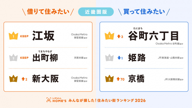 『買って住みたい街ランキング』近畿圏1位は谷町六丁目 賃貸も発表【ランキング一覧】