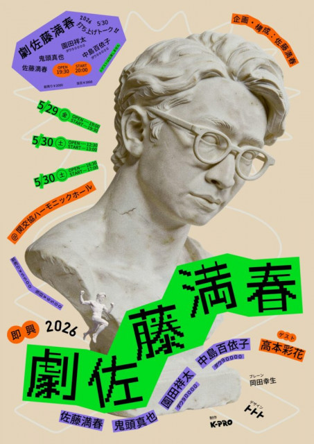 芸人・放送作家・大学客員講師・トイレ掃除好きの佐藤満春が、企画・構成・出演する劇公演。2026年は、昨年に引き続き全即興。毎公演、必ず違う劇が誕生する。メンバーも新たに、そして豪華ゲストも加えて届ける「コント寄り即興劇公演」に注目だ。