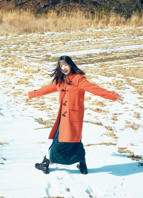 16thシングル「クリフハンガー」が発売中の日向坂46から正源司が登場。まだ雪が残る静かな道を一緒に歩く…理想の冬デートがグラビアとなった。
