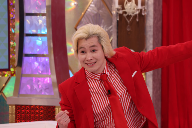 カズレーザーは、おなじみの金髪で真っ赤な衣装をまとって登場する。役柄はまだ明かされてない。
