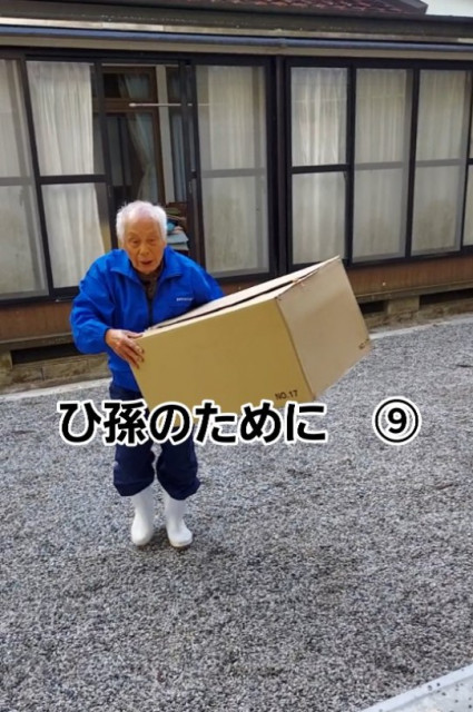 ひ孫を喜ばせたいじぃじ。ダンボールを抱えて…?
