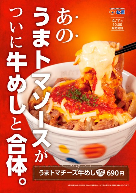 牛めし・カレー・定食・その他丼の「松屋」は、7日午前10時より『うまトマチーズ牛めし』を販売する。 【写真】最強コラボ…『うまトマチーズ牛めし』価格詳細 …