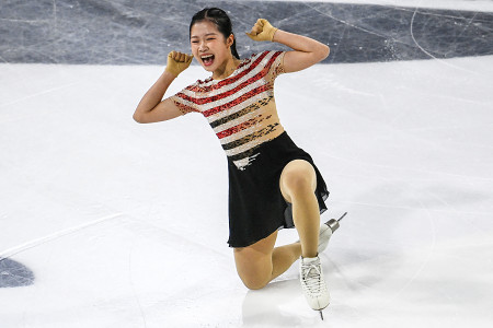 国際通貨基金(IMF)のゲオルギエワ専務理事は16日の記者会見で、人工知能(AI)導入による生産性向上などが、世界の経済成長率を最大0.8ポイント押し上げるとの見通しを明らかにした=ワシントン