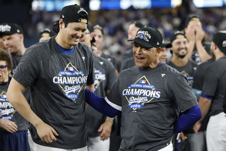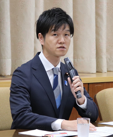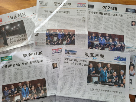 天皇陛下から任命を受ける高市早苗首相(右手前)。中央は石破茂前首相=21日午後、皇居・宮殿「松の間」(代表撮影)