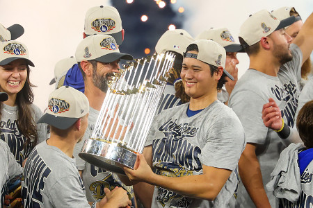 トロフィーを持つ大谷 大リーグ
