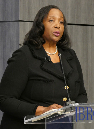 トランプ大統領による解任通告を巡り法廷闘争中のクックFRB理事は(写真)は3日、ワシントン市内で講演し、「米国民のために職務を遂行し続ける」と表明した。