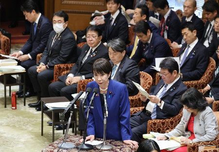 高市早苗首相(左)は7日、政権発足後に初めて開いた経済安全保障推進会議で、2022年から段階的に施行された経済安全保障推進法の改正に向けた検討に着手するよう指示した=同日午前、首相官邸