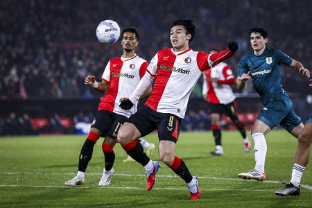 オランダ1部、フェイエノールトの上田綺世はホームのズウォレ戦に先発し、先制点を含む4得点を挙げて後半25分に退いた。今季18ゴール。チームは6―1で快勝=6日、ロッテルダム