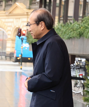 10日のノーベル賞授賞式後に晩さん会が開かれるストックホルム市庁舎では、日本原水爆被害者団体協議会(日本被団協)など、過去の平和賞受賞者をたたえるプロジェクションマッピングが上映されている=5日撮影