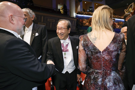 ノーベル賞授賞式を終え、笑顔を見せる化学賞の北川進・京都大特別教授(中央)=10日、ストックホルム(代表撮影)