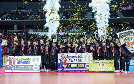 喜ぶV北海道の選手ら
