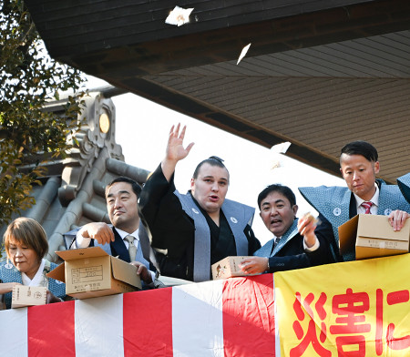 新大関Vの安青錦が豆まき