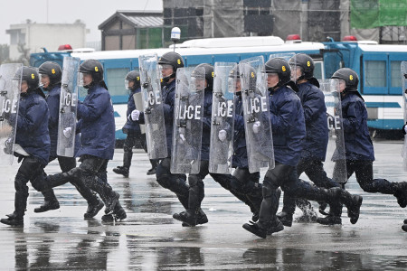 第98回選抜高校野球大会第7日。花咲徳栄(埼玉)は日本文理(新潟)に17―0で大勝し、23年ぶりのベスト8。写真は、4回表花咲徳栄1死一、三塁、佐伯が適時打を放つ=25日、甲子園