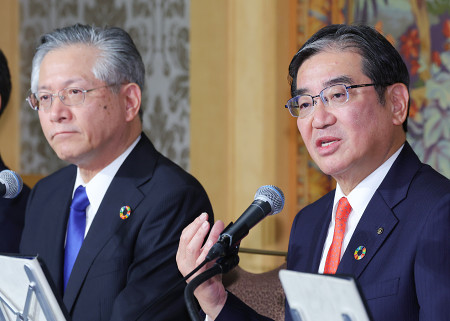 プロ野球は27日にセ、パ両リーグが開幕し、6試合が行われる。写真は開幕戦を翌日に控え、記者会見で握手する日本ハムの新庄監督(左)とソフトバンクの小久保監督=26日、みずほPayPay