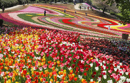 丘を埋め尽くすチューリップ