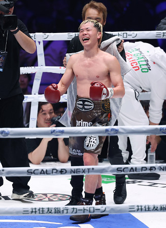 喜ぶ那須川天心 ボクシング