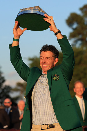 男子ゴルフのメジャー第1戦、マスターズ・トーナメント最終ラウンド。5年ぶり2度目の優勝を目指した松山英樹は通算5アンダーで12位だった=12日、米ジョージア州オーガスタ