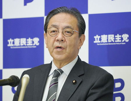 記者会見する立民の水岡代表