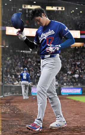 ジャイアンツ戦で力投するドジャース先発の大谷。6回5安打無失点、7奪三振と好投したが勝敗はつかなかった。ドジャースは0―3で敗れた=22日、サンフランシスコ