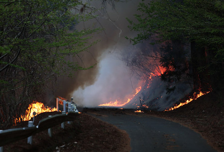 岩手・大槌町で山林火災